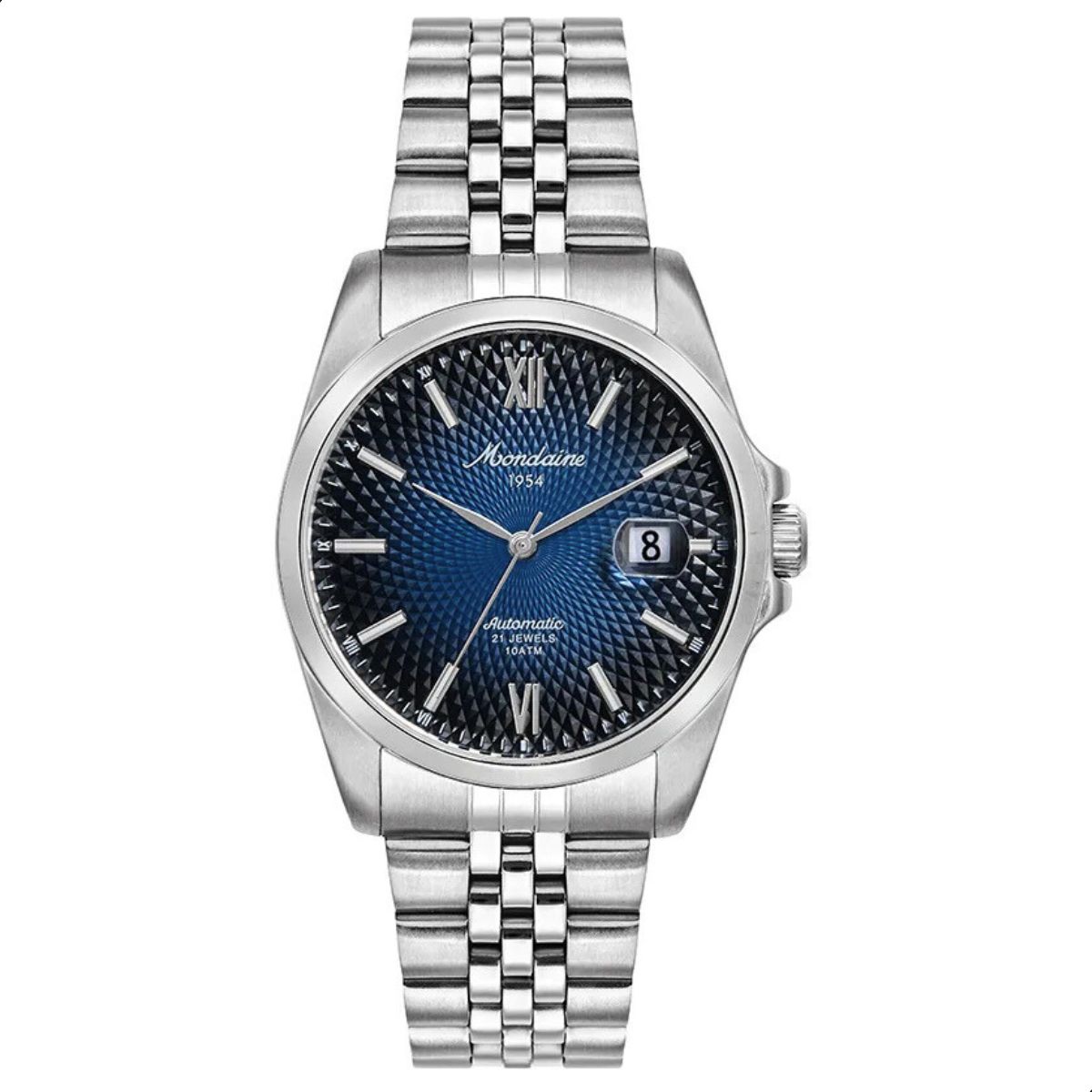 Mostrador: Azul Degradê com Algarismos Romanos e Inscrição Mondaine 1954 (Logo Clássica da marca)